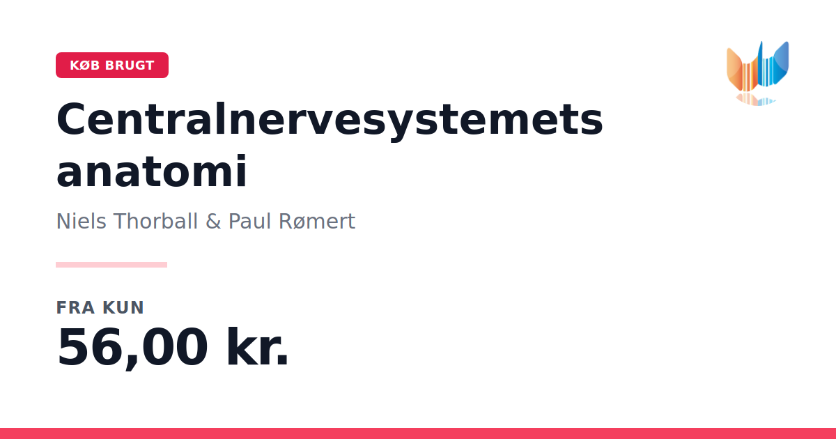 Lige nu kan du købe "Centralnervesystemets anatomi" af Niels Thorball & Paul Rømert til kun 56,00 kr. Du sparer hele 74% af nyprisen! Bogen du ser her er brugt, og i god stand. Vi har i øjeblikket kun et enkelt eksemplar til salg af "Centralnervesystemets anatomi", så slå til mens du kan!