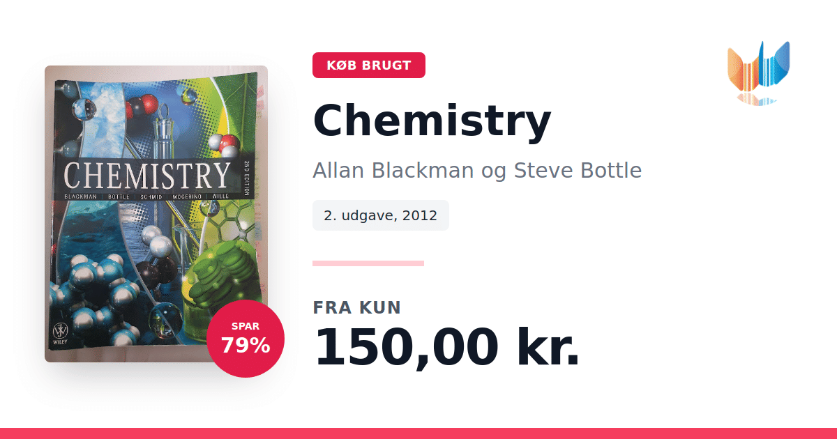 Chemistry 2. udgave (2012) af Uta Wille, Allan Blackman, Steven E. Bottle, Mauro Mocerino og Siegbert Schmid er et førende grundbogsværk til førsteårsstuderende i kemi. Med sine 1229 sider kombinerer den et omfangsrigt, men overskueligt tekstforløb med en digital platform, der understøtter alle aspekter af undervisningen og læringen. Tekst og digitale ressourcer er skræddersyet til det traditionelle førsteårskursus på universiteter. Den engagerende og tilgængelige skrivestil gør stoffet levende og relevant for studerende, mens gennemarbejdede eksempler og øvelser tydeliggør komplekse begreber og problemløsningstrin. Den fuldt integrerede onlineløsning WileyPLUS giver både undervisere og studerende fleksible værktøjer: interaktive øvelser, øjeblikkelig feedback og multimediemateriale, der supplerer bogens kapitler og øger forståelsen. I forhold til førsteudgaven er teksten opdateret med et nyt kapitel om hovedgrupperne og en række mindre forbedringer i struktur og pædagogik, så denne udgave endnu bedre møder behovene i moderne kemiundervisning.