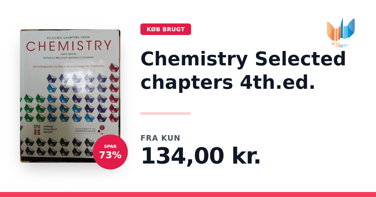 Lige nu kan du købe "Chemistry Selected chapters 4th.ed." til kun 134,00 kr. Du sparer hele 73% af nyprisen! Bogen du ser her er brugt, og i perfekt stand. Vi har i øjeblikket kun et enkelt eksemplar til salg af "Chemistry Selected chapters 4th.ed.", så slå til mens du kan!