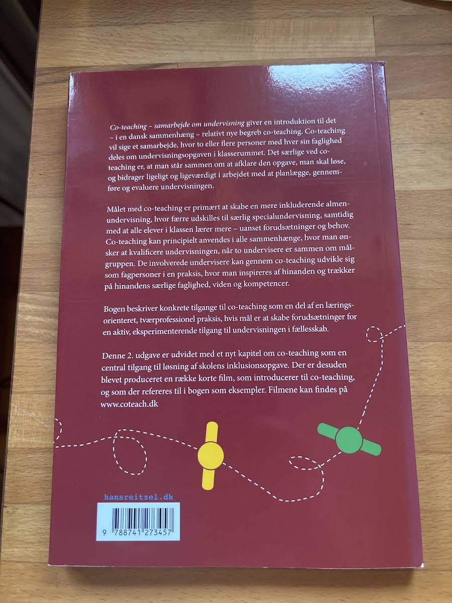 Co-teaching er en undervisningsmetode, hvor to fagprofessionelle med forskellige kompetencer planlægger, gennemfører og evaluerer undervisning sammen. Formålet er at skabe et inkluderende læringsmiljø, der kan favne både almenelever og elever med særlige behov. Metoden kan styrke elevernes faglige udvikling. Bogen er udgivet af Hans Reitzels Forlag og er i sin 2. udgave.