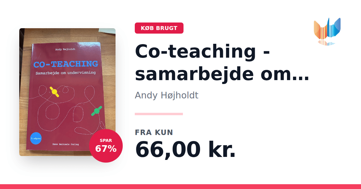 Lige nu kan du købe "Co-teaching - samarbejde om undervisning" af Andy Højholdt til kun 66,00 kr. Du sparer hele 67% af nyprisen! Bogen du ser her er brugt, og i perfekt stand. Vi har i øjeblikket 3 eksemplarer til salg af "Co-teaching - samarbejde om undervisning", så husk at se de forskellige udgaver.