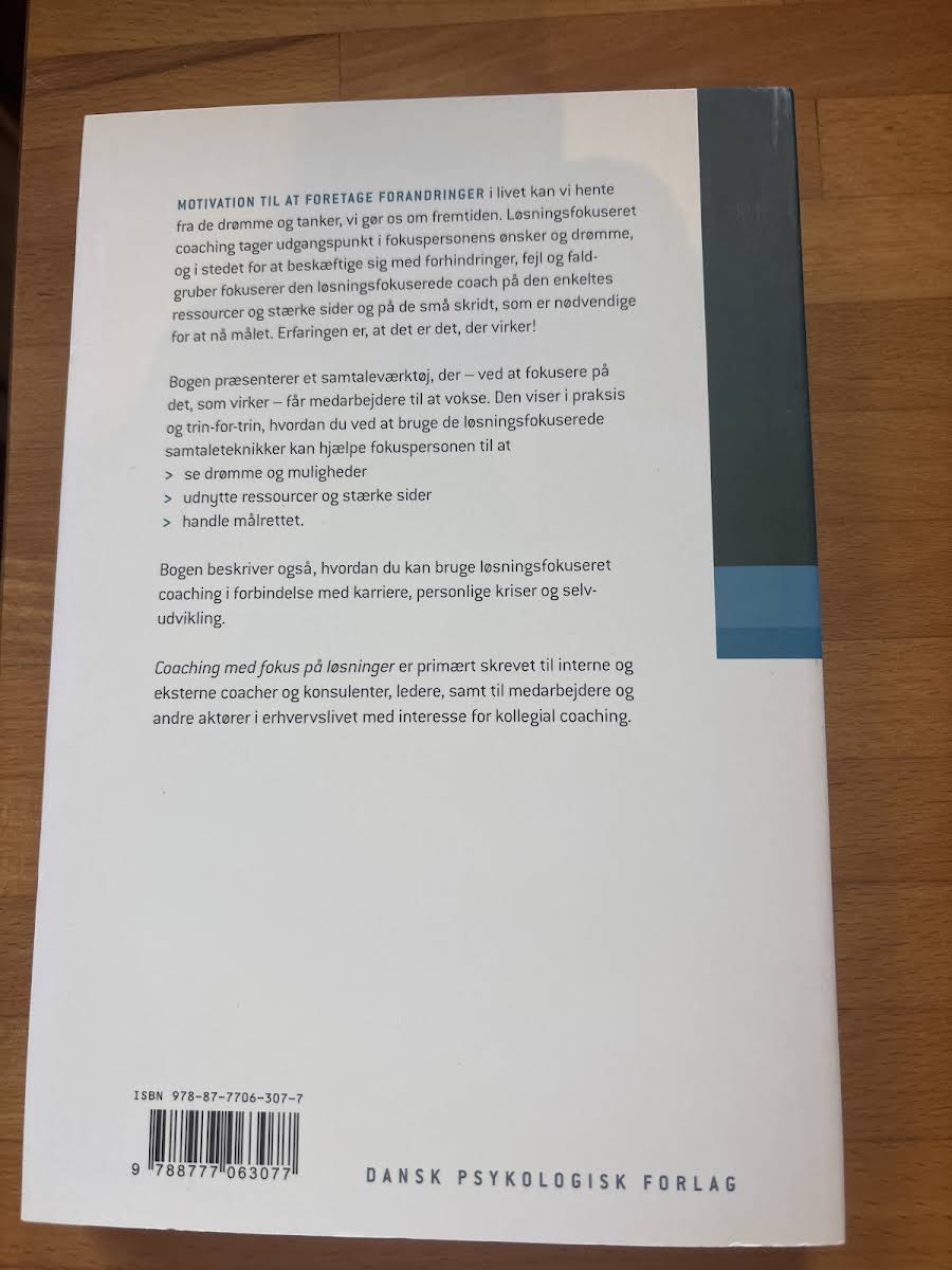 I "Coaching med fokus på løsninger" præsenterer Gry Espedal, Trond Andersen og Tove Svendsen en tilgang til coaching, hvor fokus ligger på den enkelte persons ressourcer og potentiale frem for begrænsninger og fejl. Bogen udfolder, hvordan man ved at arbejde ud fra den løsningsfokuserede metode kan sætte handling i gang og skabe målbare fremskridt gennem små, men betydningsfulde skridt, der åbner for både drømme og muligheder. Med en praktisk og trin-for-trin guide til samtaleteknik, forklarer forfatterne, hvordan denne coachingstil kan styrke medarbejderes og lederes evne til at udnytte deres indre styrker. Bogen henvender sig primært til coacher, konsulenter og ledere samt andre erhvervsudøvere, som ønsker at anvende metoden både i karriererelaterede sammenhænge og i forhold til personlig udvikling.