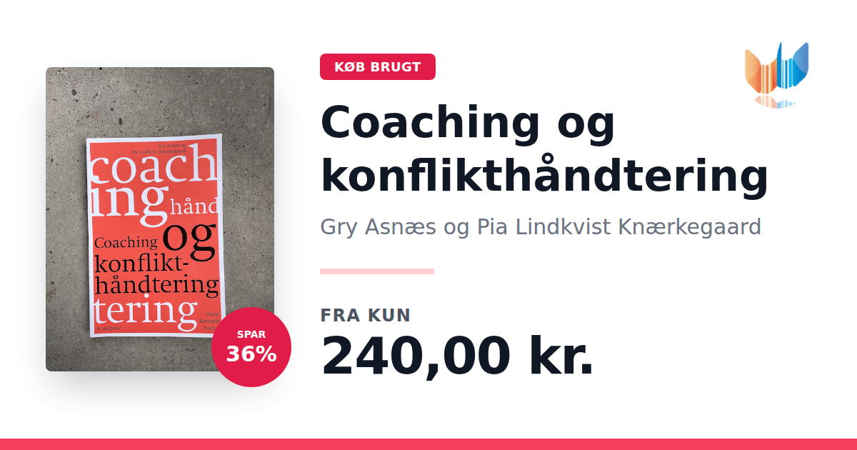 Lige nu kan du købe "Coaching og konflikthåndtering" af Gry Asnæs og Pia Lindkvist Knærkegaard til kun 240,00 kr. Du sparer hele 36% af nyprisen! Bogen du ser her er brugt, og i perfekt stand. Vi har i øjeblikket kun et enkelt eksemplar til salg af "Coaching og konflikthåndtering", så slå til mens du kan!