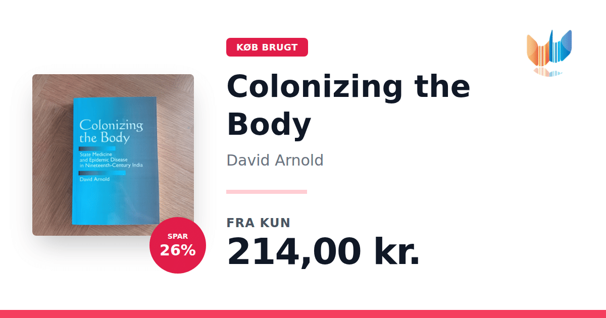 Lige nu kan du købe "Colonizing the Body" af David Arnold til kun 214,00 kr. Du sparer hele 26% af nyprisen! Bogen du ser her er brugt, og i perfekt stand. Vi har i øjeblikket kun et enkelt eksemplar til salg af "Colonizing the Body", så slå til mens du kan!