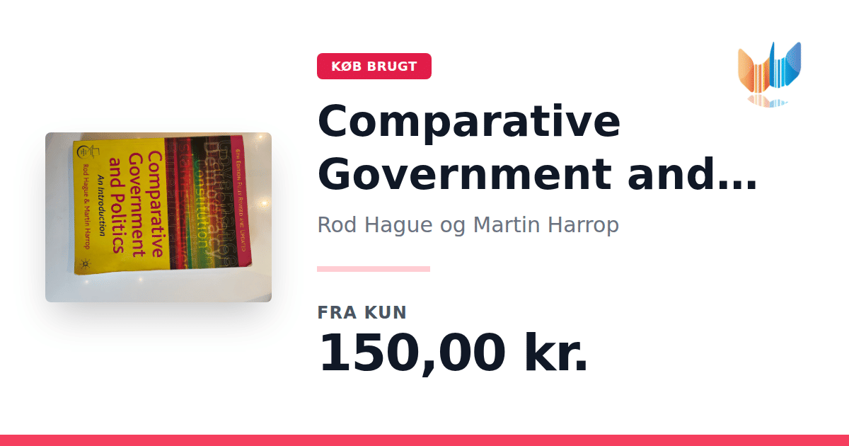 Lige nu kan du købe "Comparative Government and Politics" af Rod Hague og Martin Harrop til kun 150,00 kr. Bogen du ser her er brugt, og i god stand. Vi har i øjeblikket 2 eksemplarer til salg af "Comparative Government and Politics", så husk at se de forskellige udgaver.