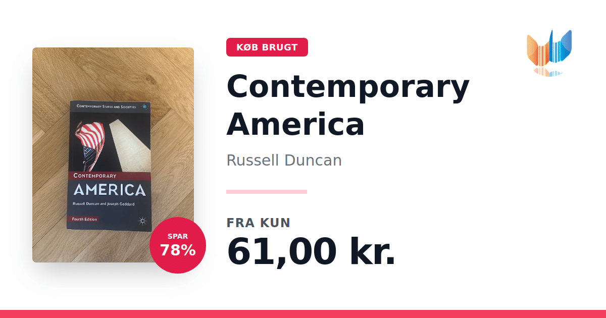 Lige nu kan du købe "Contemporary America" af Russell Duncan til kun 61,00 kr. Du sparer hele 78% af nyprisen! Bogen du ser her er brugt, og i god stand. Vi har i øjeblikket 3 eksemplarer til salg af "Contemporary America", så husk at se de forskellige udgaver.
