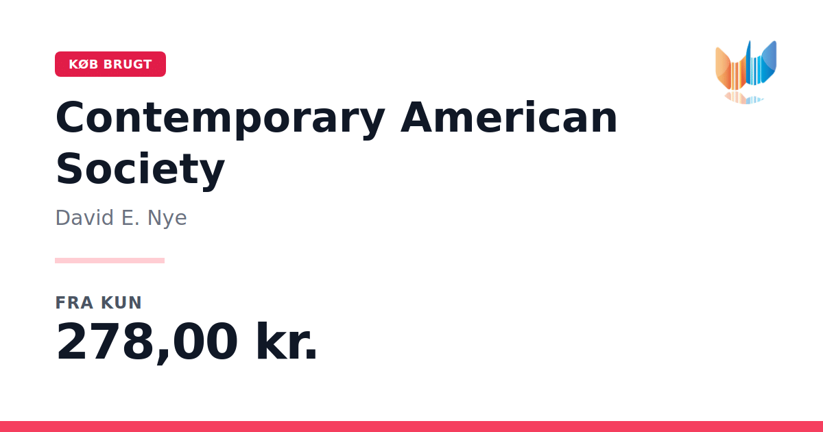 Contemporary American Society af David E. Nye byder læseren velkommen til en grundig introduktion til det moderne USA. I 7. udgave (2009) fra Akademisk Forlag præsenteres 279 sider spækket med analyser og perspektiver, der klæder europæiske læsere på til at forstå amerikanske forhold. Gennem bogen udfoldes landets geografiske rammer og befolkningens forandringer over tid. Du får indblik i det politiske og valg- tekniske maskineri, økonomiens opbygning, sociale klasser, racedynamikker og den store religiøse variation. Endvidere undersøges velfærds- og uddannelsessystemets rolle samt de aktuelle udfordringer, USA står over for i det 21. århundrede. Teksten kombinerer survey og essay, så du får både en systematisk oversigt og stof til refleksion over nationens videre udvikling.