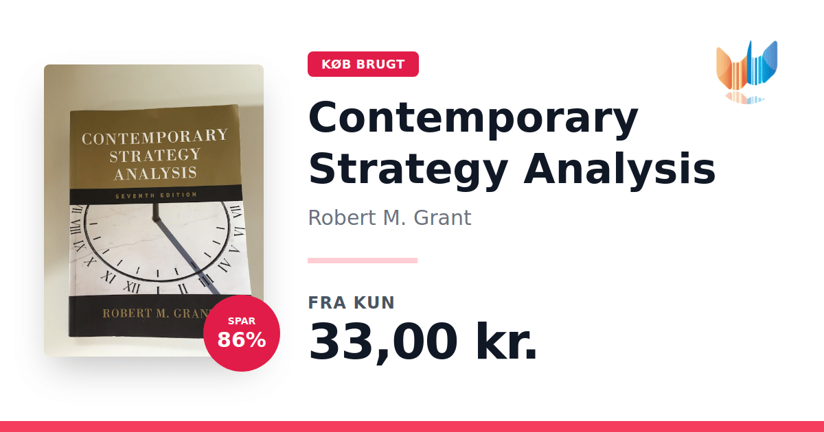 Contemporary Strategy Analysis (7. udgave) anses bredt for at være det førende læremiddel inden for strategisk ledelse. Robert M. Grant formidler grundlæggende strategikoncepter gennem en klar, logisk og sammenhængende ramme, hvor teori direkt kobles til aktuelle eksempler fra erhvervslivet. Denne udgave har fået et styrket fokus på strategiimplementering med nyt og udbygget indhold. Case-delen er væsentligt udvidet med cases fra en lang række brancher, og i hver kapitel introduceres "Strategy Capsules", der illustrerer konkrete virksomheders strategivalg og deres konsekvenser. Flere af de længere kapitler er opdelt eller forkortet for at sikre bedre læsbarhed. Bogen, udgivet i 2009 af John Wiley & Sons, Limited, i paperback-format, rummer 516 sider fyldt med praktiske redskaber og analyser. Contemporary Strategy Analysis er velegnet til såvel MBA-studerende som avancerede bachelorer, der ønsker et solidt teoretisk fundament kombineret med aktuelle, virkelighedsnære eksempler.
