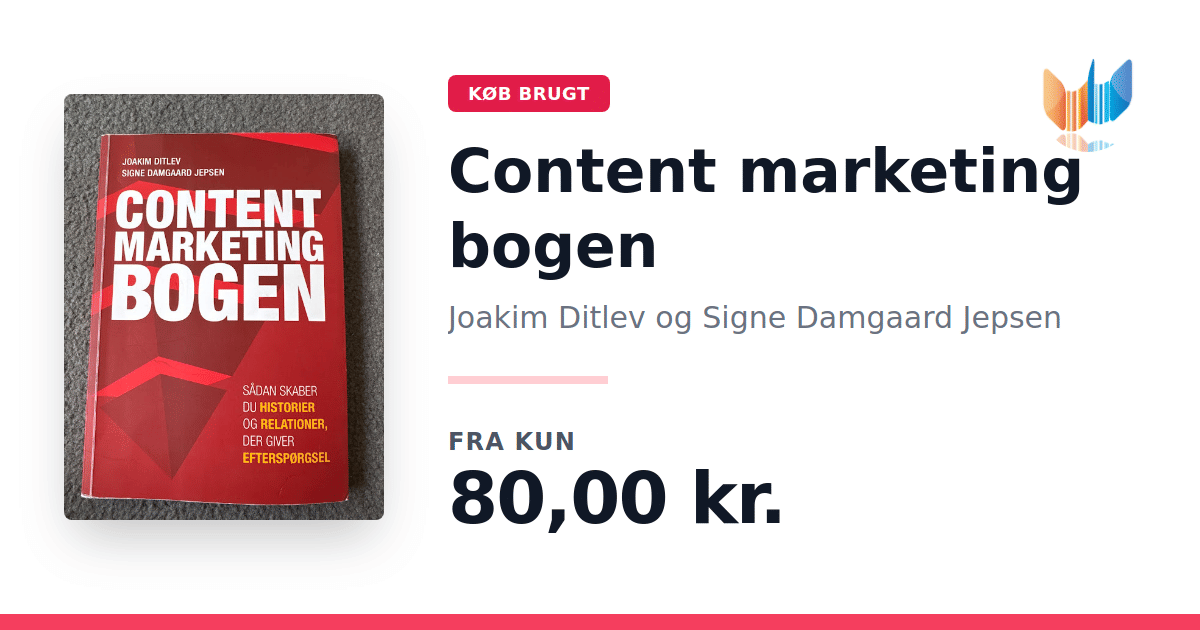 Lige nu kan du købe "Content marketing bogen" af Joakim Ditlev og Signe Damgaard Jepsen til kun 80,00 kr. Bogen du ser her er brugt, og i god stand. Vi har i øjeblikket kun et enkelt eksemplar til salg af "Content Marketing Bogen", så slå til mens du kan!