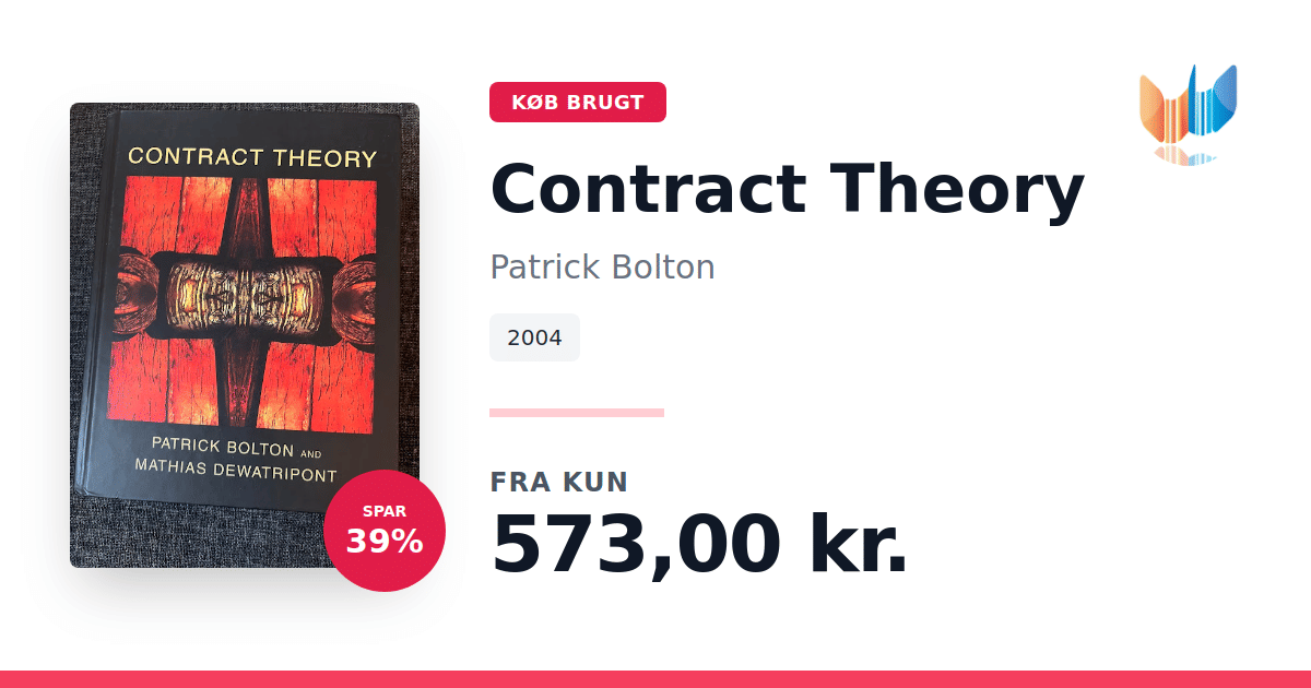 Lige nu kan du købe "Contract Theory" af Patrick Bolton til kun 573,00 kr. Du sparer hele 39% af nyprisen! Bogen du ser her er brugt, og i perfekt stand. Vi har i øjeblikket 3 eksemplarer til salg af "Contract Theory", så husk at se de forskellige udgaver.