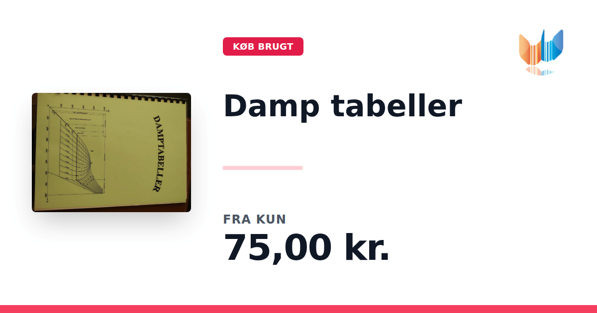Lige nu kan du købe "Damp tabeller " til kun 75,00 kr. Bogen du ser her er brugt, og i god stand. Vi har i øjeblikket kun et enkelt eksemplar til salg af "Damp tabeller ", så slå til mens du kan!