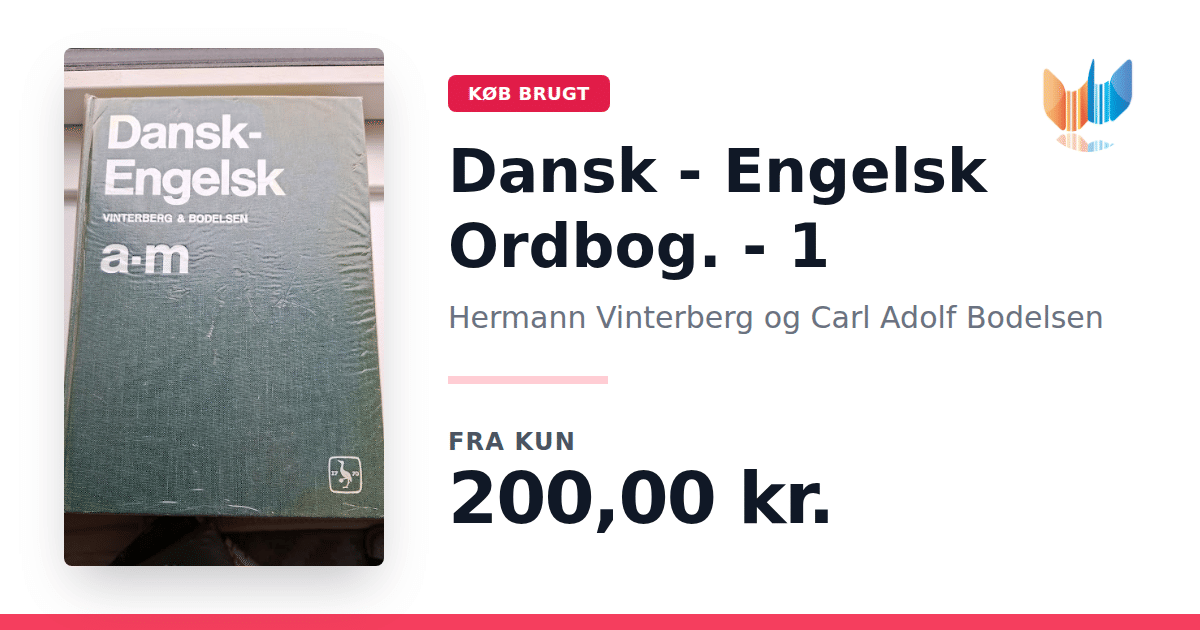 Lige nu kan du købe "Dansk - Engelsk Ordbog. - 1" af Hermann Vinterberg og Carl Adolf Bodelsen til kun 200,00 kr. Bogen du ser her er brugt, og i god stand. Vi har i øjeblikket 2 eksemplarer til salg af "Dansk - Engelsk Ordbog. - 1", så husk at se de forskellige udgaver.