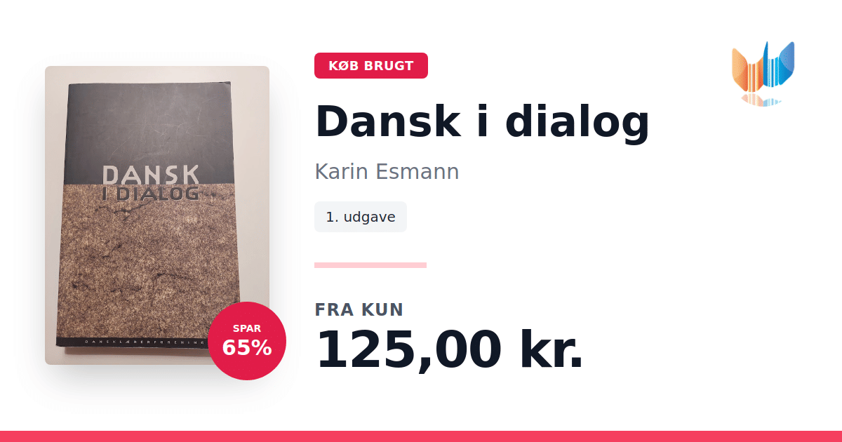 Lige nu kan du købe "Dansk i dialog" af Karin Esmann til kun 125,00 kr. Du sparer hele 65% af nyprisen! Bogen du ser her er brugt, og i perfekt stand. Vi har i øjeblikket 3 eksemplarer til salg af "Dansk i dialog", så husk at se de forskellige udgaver.