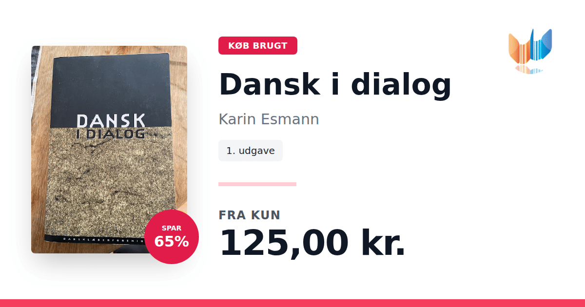 Lige nu kan du købe "Dansk i dialog" af Karin Esmann til kun 125,00 kr. Du sparer hele 65% af nyprisen! Bogen du ser her er brugt, og i perfekt stand. Vi har i øjeblikket 3 eksemplarer til salg af "Dansk i dialog", så husk at se de forskellige udgaver.