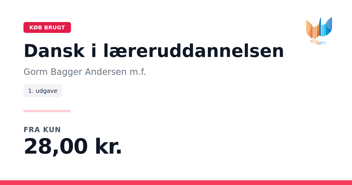 Lige nu kan du købe "Dansk i læreruddannelsen" af Gorm Bagger Andersen m.f. til kun 28,00 kr. Bogen du ser her er brugt, og i god stand. Vi har i øjeblikket kun et enkelt eksemplar til salg af "Dansk i læreruddannelsen", så slå til mens du kan!