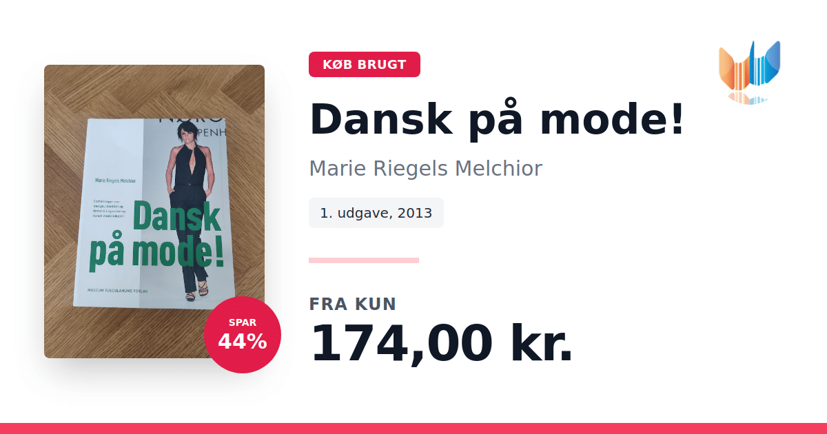 Lige nu kan du købe "Dansk på mode!" af Marie Riegels Melchior til kun 174,00 kr. Du sparer hele 44% af nyprisen! Bogen du ser her er brugt, og i perfekt stand. Vi har i øjeblikket kun et enkelt eksemplar til salg af "Dansk på mode!", så slå til mens du kan!
