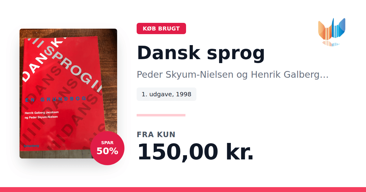 Lige nu kan du købe "Dansk sprog" af Peder Skyum-Nielsen og Henrik Galberg Jacobsen til kun 150,00 kr. Du sparer hele 50% af nyprisen! Bogen du ser her er brugt, og i perfekt stand. Vi har i øjeblikket 3 eksemplarer til salg af "Dansk sprog", så husk at se de forskellige udgaver.