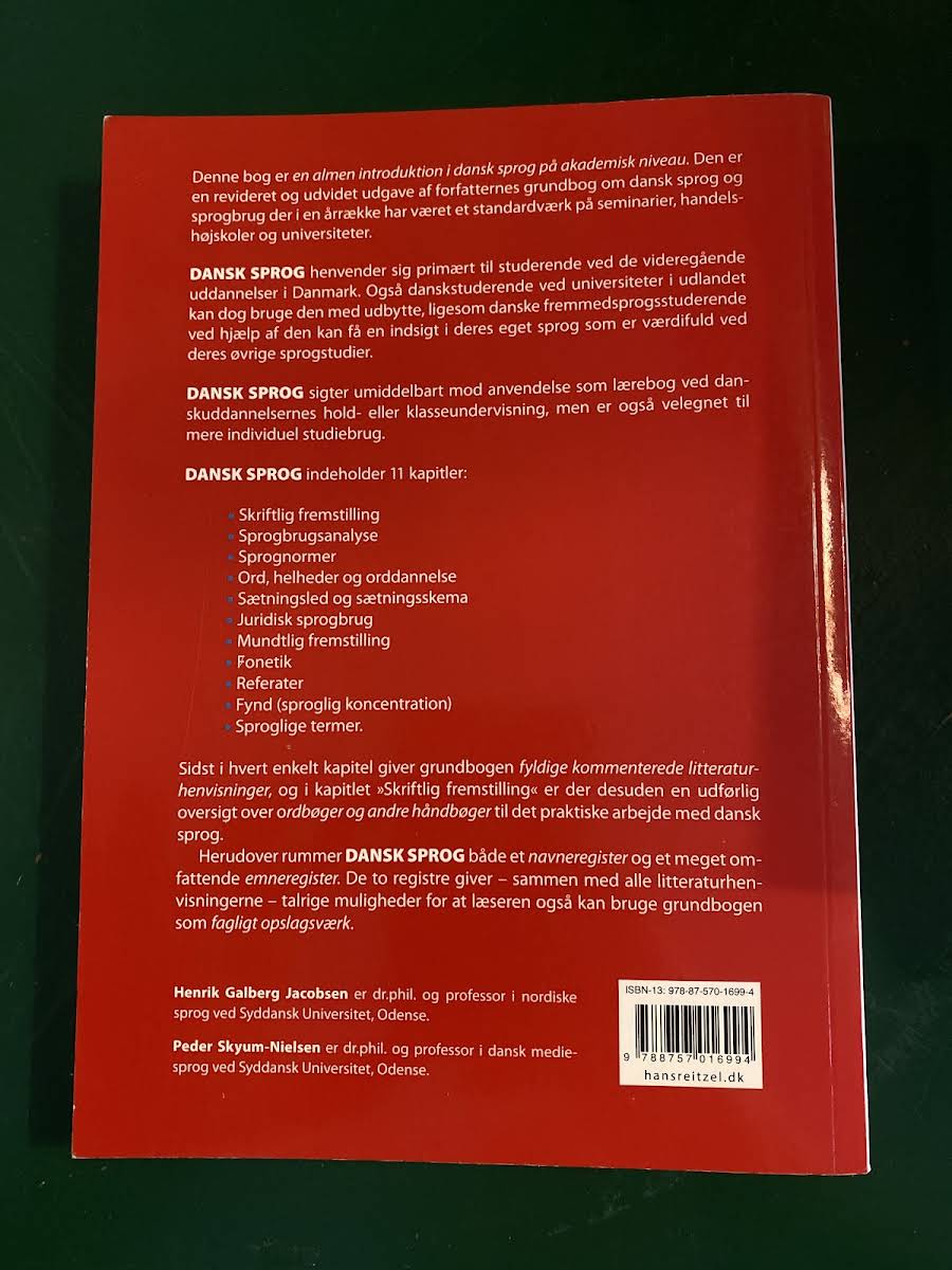 Dansk sprog giver en indsigtsfuld og velstruktureret introduktion til det danske sprogs verden. Ved at kombinere teoretiske perspektiver med praktiske eksempler tilbyder Peder Skyum-Nielsen og Henrik Galberg Jacobsen et værktøj, der hjælper studerende og andre interesserede med at få en dybere forståelse af sprogfænomener. Bogen formidler, hvordan sproget anvendes og udvikles, og den indbyder til refleksion over både normer og kreative afvigelser i dansk sprogbrug. Med sine 310 sider er Dansk sprog en grundlæggende ressource, der dykker ned i centrale emner og problemstillinger på et akademisk niveau. Udgivet af Hans Reitzels Forlag i 2007, rummer værket en række relevante indsigter og litteraturhenvisninger, som gør det værdifuldt både i undervisningssammenhæng og for det personlige studie.