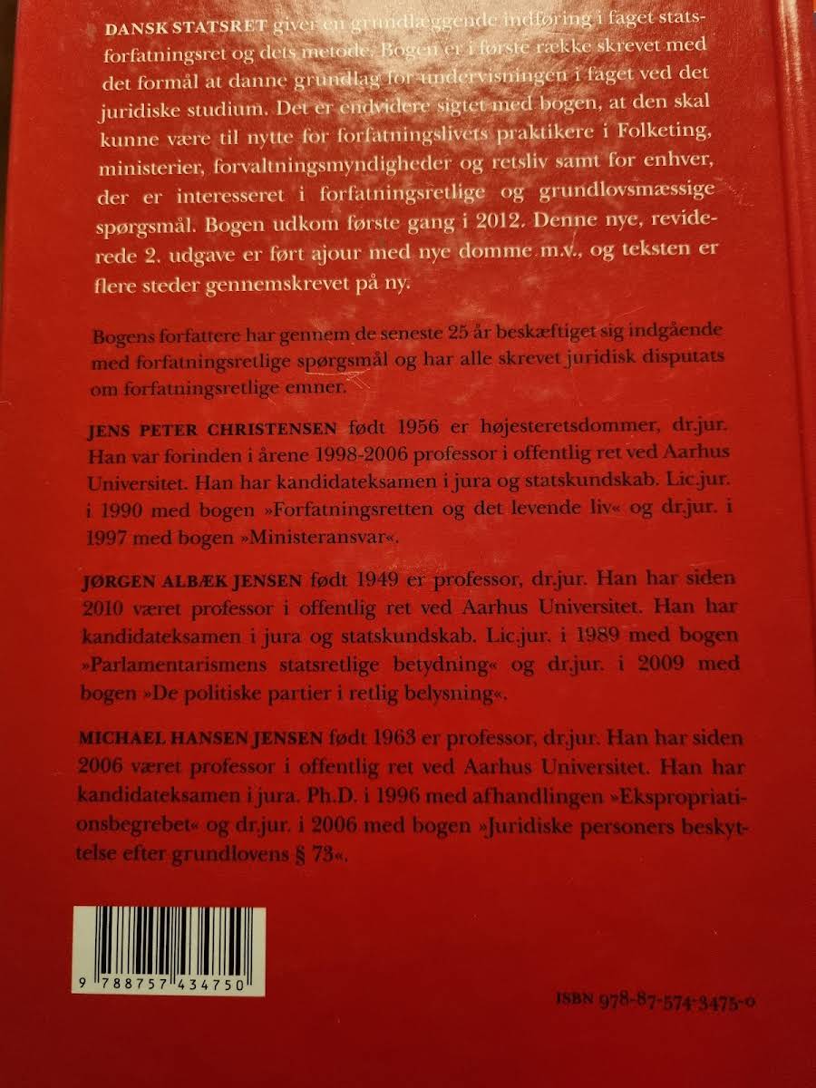 Dansk Statsret giver en klar og grundig introduktion til de centrale emner inden for statsforfatningsret og de metoder, der anvendes i faget. Den reviderede 2. udgave, udgivet i 2016, afspejler de seneste domme og har på flere punkter gennemgået en omfattende tekstredigering for at sikre relevansen og aktualiteten. Bogen præsenterer stoffet på en lettilgængelig og overskuelig måde, hvilket gør de ofte komplekse problemstillinger forståelige for både studerende og jurister i praksis. Der henvises til et bredt udvalg af tidligere statsretlige fremstillinger af anerkendte forfattere, hvilket giver læseren mulighed for at dykke dybere ned i emnerne. Som et værdifuldt redskab til undervisningen på det juridiske studium, er Dansk Statsret også et uundværligt værktøj for forfatningslivets praktikere og alle med en interesse for grundlæggende forfatningsretlige spørgsmål. Inde i bogen findes en omfattende oversigt over forfatningsretlige love, domsregistreringer og henvist materiale, som yderligere understøtter den didaktiske tilgang. Med sit systematiske indhold og opdaterede materiale er bogen en essentiel ressource for dem, der ønsker et solidt fundament inden for statsforfatningsret.