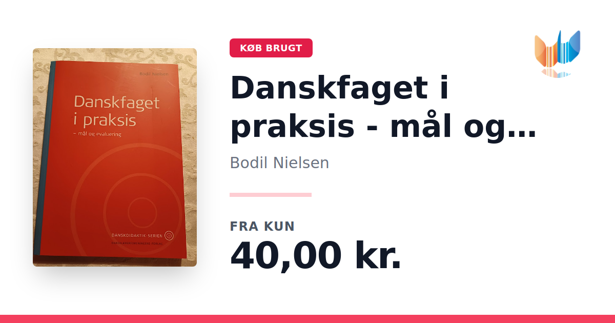 Lige nu kan du købe "Danskfaget i praksis - mål og evaluering" af Bodil Nielsen til kun 40,00 kr. Bogen du ser her er brugt, og i perfekt stand. Vi har i øjeblikket kun et enkelt eksemplar til salg af "Danskfaget i praksis - mål og evaluering", så slå til mens du kan!