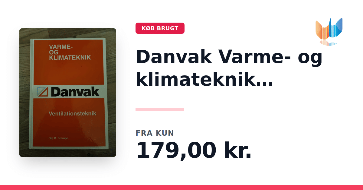 Lige nu kan du købe "Danvak Varme- og klimateknik ventilationsteknik" til kun 179,00 kr. Bogen du ser her er brugt, og i perfekt stand. Vi har i øjeblikket 2 eksemplarer til salg af "Danvak Varme- og klimateknik ventilationsteknik", så husk at se de forskellige udgaver.