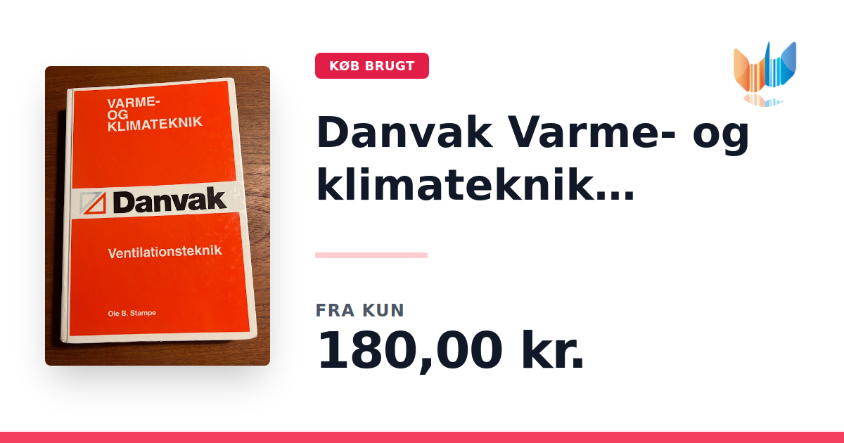 Lige nu kan du købe "Danvak Varme- og klimateknik ventilationsteknik" til kun 180,00 kr. Bogen du ser her er brugt, og i perfekt stand. Vi har i øjeblikket 2 eksemplarer til salg af "Danvak Varme- og klimateknik ventilationsteknik", så husk at se de forskellige udgaver.