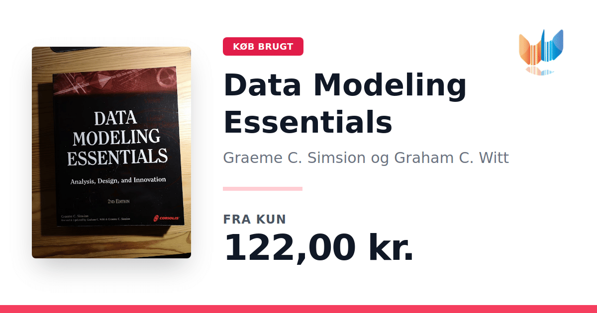 Lige nu kan du købe "Data Modeling Essentials" af Graeme C. Simsion og Graham C. Witt til kun 122,00 kr. Bogen du ser her er brugt, og i perfekt stand. Vi har i øjeblikket 2 eksemplarer til salg af "Data Modeling Essentials", så husk at se de forskellige udgaver.