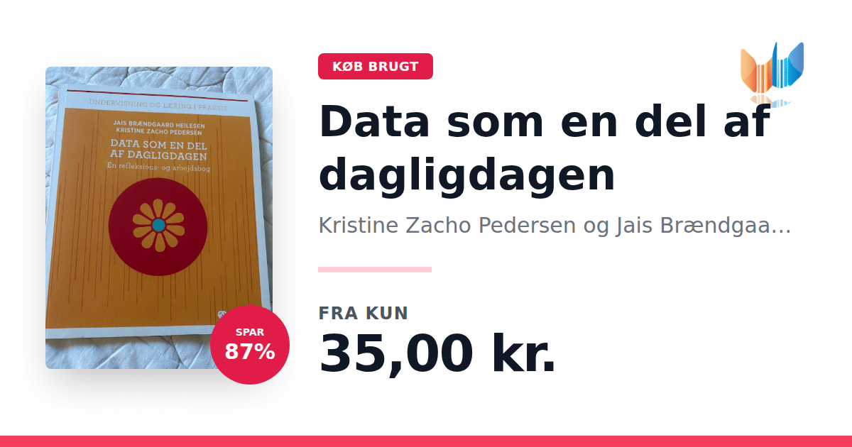 Lige nu kan du købe "Data som en del af dagligdagen" af Kristine Zacho Pedersen og Jais Brændgaard Heilesen til kun 35,00 kr. Du sparer hele 87% af nyprisen! Bogen du ser her er brugt, og i perfekt stand. Vi har i øjeblikket kun et enkelt eksemplar til salg af "Data som en del af dagligdagen", så slå til mens du kan!
