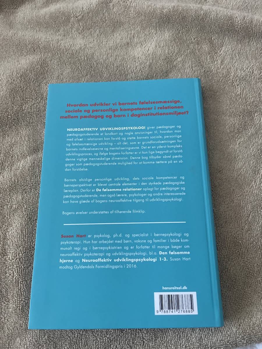 "De følsomme relationer" by Susan Hart er en essentiel introduktion til neuroaffektiv udviklingspsykologi, målrettet pædagoger og pædagogstuderende. Med udgangspunkt i relationen mellem barn og pædagog belyser bogen, hvordan man kan understøtte barnets emotionelle, sociale og individuelle udvikling. Udviklingen af disse kompetencer danner grundlaget for barnets evne til empati og mentalisering, og bogen giver en dybdegående forståelse af dette komplekse felt. Bogen er bygget op omkring en tilgang, hvor relationen sættes i centrum, og hvor pædagogens rolle i daginstitutionsmiljøet fremhæves som nøglen til barnets alsidige udvikling. Udover teoretiske perspektiver præsenteres øvelser, der understøttes af filmklip (dog uden nuværende adgang), så læseren kan omsætte teorien til praksis. "De følsomme relationer" udgivet af Hans Reitzels Forlag i 2020, giver dermed et solidt fundament for dem, der ønsker at styrke deres indsigt og praksis inden for neuroaffektiv udviklingspsykologi.