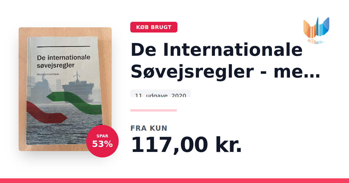 Lige nu kan du købe "De Internationale Søvejsregler - med kommentarer" til kun 117,00 kr. Du sparer hele 53% af nyprisen! Bogen du ser her er brugt, og i god stand. Vi har i øjeblikket kun et enkelt eksemplar til salg af "De Internationale Søvejsregler - med kommentarer", så slå til mens du kan!