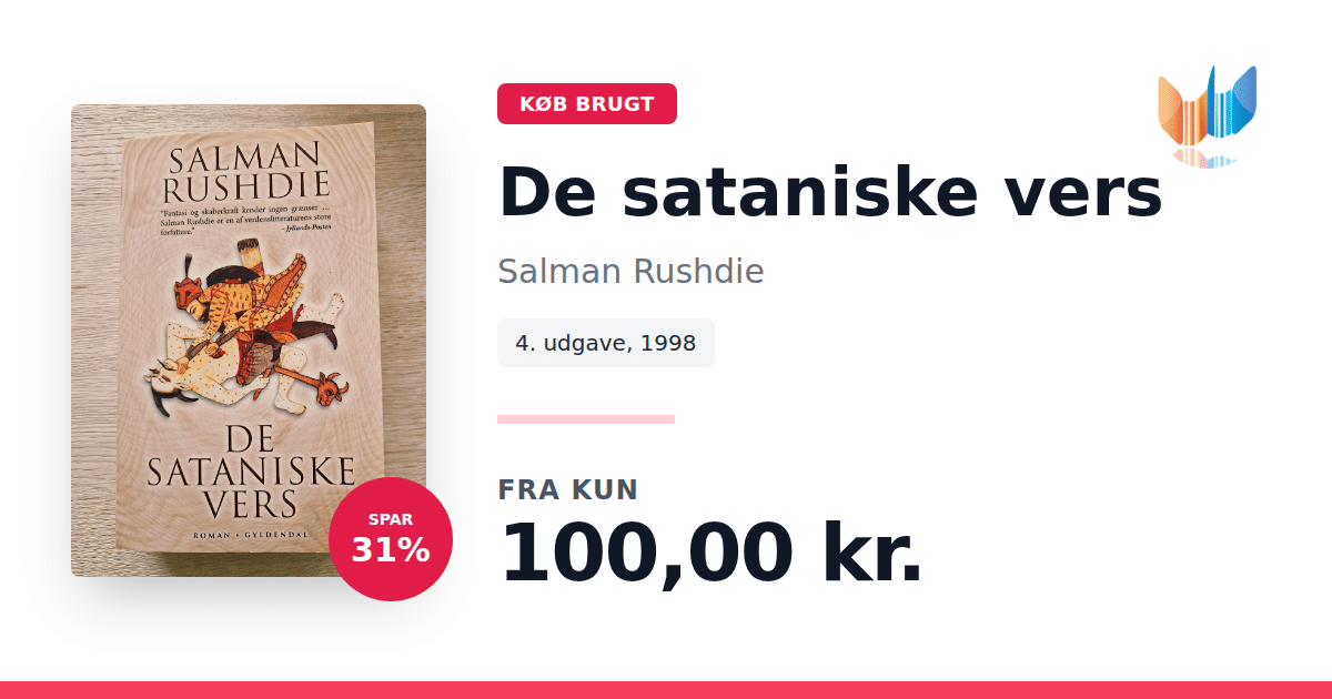 Lige nu kan du købe "De sataniske vers" af Salman Rushdie til kun 100,00 kr. Du sparer hele 31% af nyprisen! Bogen du ser her er brugt, og i perfekt stand. Vi har i øjeblikket kun et enkelt eksemplar til salg af "De sataniske vers", så slå til mens du kan!