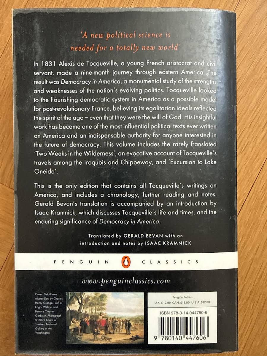 • Democracy in America, Alexis Tocqueville, 9780140447606