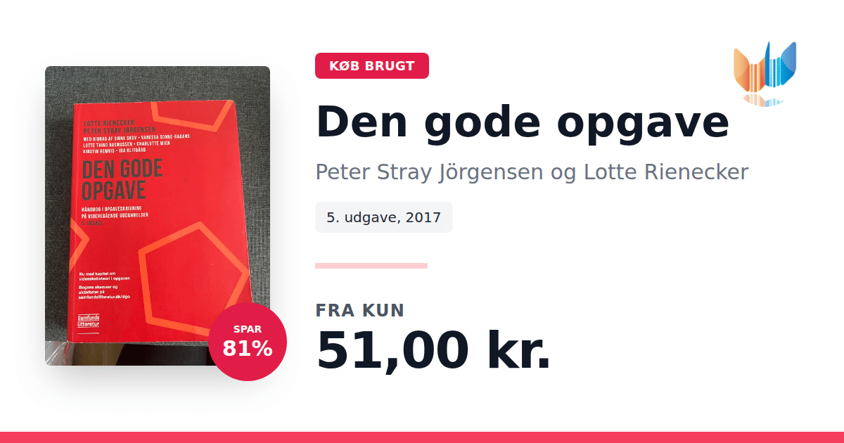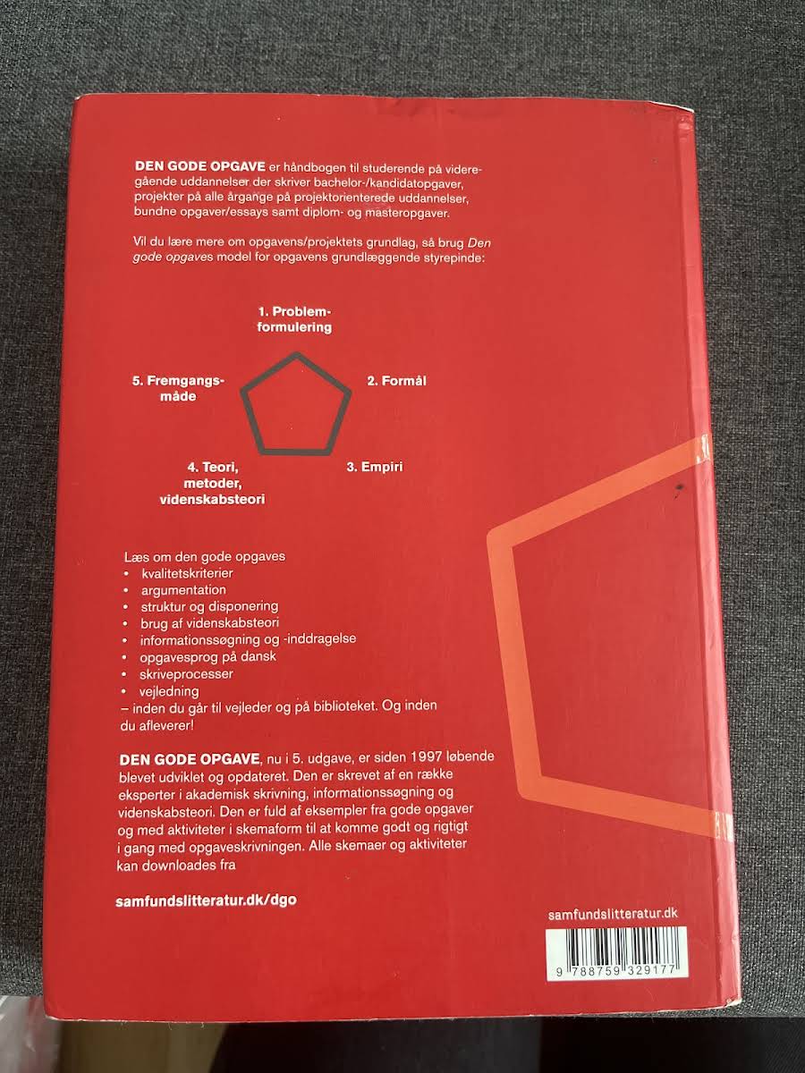 "Den gode opgave" udkommer nu i 5. udgave og er den ubestridte guide for alle studerende, der skal skrive selvstændige og videnskabelige opgaver. I denne udgave har Peter Stray Jörgensen og Lotte Rienecker fået selskab af fem nye medforfattere, som bidrager med deres unikke ekspertise. 5. udgave byder på to nye kapitler – et om videnskabsteori, der belyser, hvordan man omsætter teoretiske overvejelser til praksis, samt et kapitel om litteratur- og informationssøgning, som introducerer de studerende til processen bag en systematisk research. Bogen er fortsat fyldt med konkrete eksempler og aktiviteter, der hjælper den studerende godt på vej i opgaveskrivningen, og har i over 20 år dannet grundlaget for succesfuld akademisk skrivning.