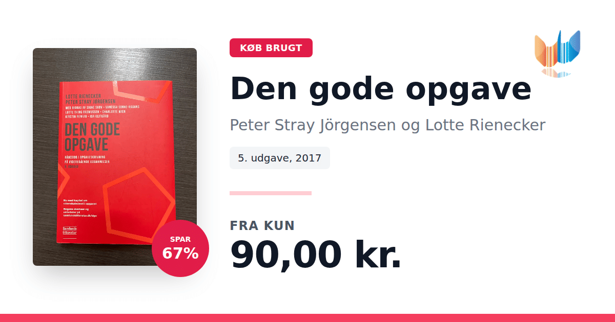"Den gode opgave" udkommer nu i 5. udgave og er den ubestridte guide for alle studerende, der skal skrive selvstændige og videnskabelige opgaver. I denne udgave har Peter Stray Jörgensen og Lotte Rienecker fået selskab af fem nye medforfattere, som bidrager med deres unikke ekspertise. 5. udgave byder på to nye kapitler – et om videnskabsteori, der belyser, hvordan man omsætter teoretiske overvejelser til praksis, samt et kapitel om litteratur- og informationssøgning, som introducerer de studerende til processen bag en systematisk research. Bogen er fortsat fyldt med konkrete eksempler og aktiviteter, der hjælper den studerende godt på vej i opgaveskrivningen, og har i over 20 år dannet grundlaget for succesfuld akademisk skrivning.