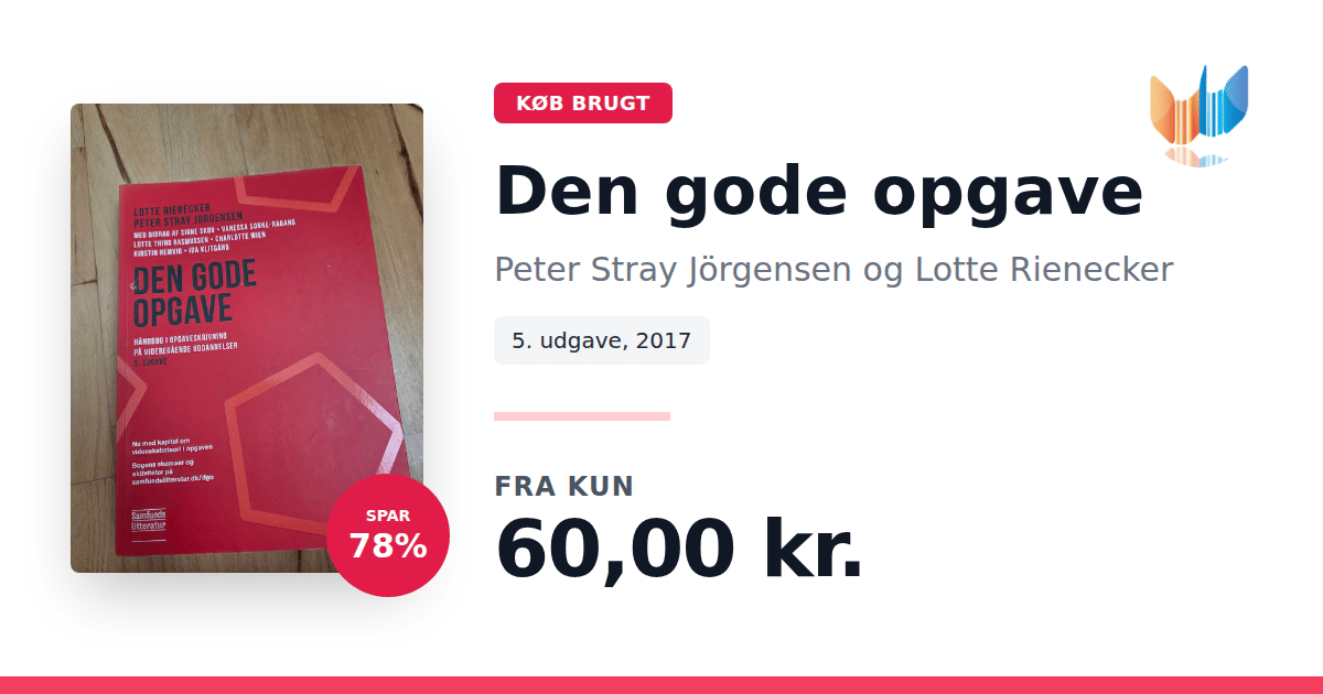 "Den gode opgave" udkommer nu i 5. udgave og er den ubestridte guide for alle studerende, der skal skrive selvstændige og videnskabelige opgaver. I denne udgave har Peter Stray Jörgensen og Lotte Rienecker fået selskab af fem nye medforfattere, som bidrager med deres unikke ekspertise. 5. udgave byder på to nye kapitler – et om videnskabsteori, der belyser, hvordan man omsætter teoretiske overvejelser til praksis, samt et kapitel om litteratur- og informationssøgning, som introducerer de studerende til processen bag en systematisk research. Bogen er fortsat fyldt med konkrete eksempler og aktiviteter, der hjælper den studerende godt på vej i opgaveskrivningen, og har i over 20 år dannet grundlaget for succesfuld akademisk skrivning.