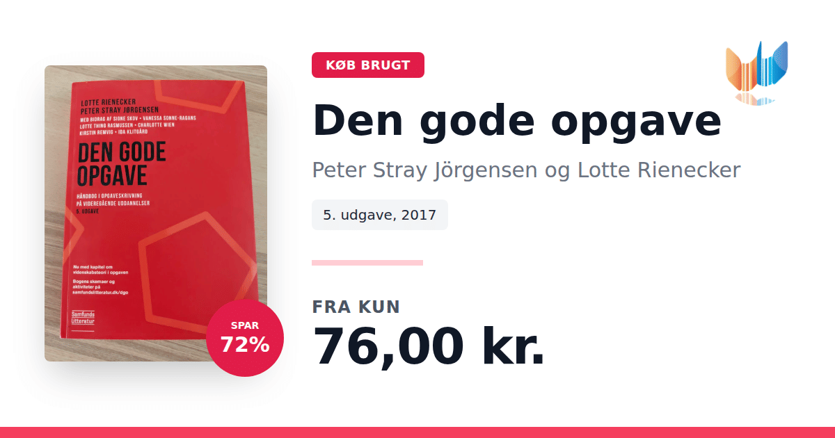"Den gode opgave" udkommer nu i 5. udgave og er den ubestridte guide for alle studerende, der skal skrive selvstændige og videnskabelige opgaver. I denne udgave har Peter Stray Jörgensen og Lotte Rienecker fået selskab af fem nye medforfattere, som bidrager med deres unikke ekspertise. 5. udgave byder på to nye kapitler – et om videnskabsteori, der belyser, hvordan man omsætter teoretiske overvejelser til praksis, samt et kapitel om litteratur- og informationssøgning, som introducerer de studerende til processen bag en systematisk research. Bogen er fortsat fyldt med konkrete eksempler og aktiviteter, der hjælper den studerende godt på vej i opgaveskrivningen, og har i over 20 år dannet grundlaget for succesfuld akademisk skrivning.