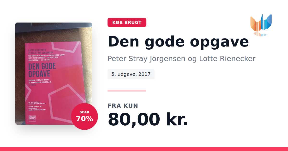 "Den gode opgave" udkommer nu i 5. udgave og er den ubestridte guide for alle studerende, der skal skrive selvstændige og videnskabelige opgaver. I denne udgave har Peter Stray Jörgensen og Lotte Rienecker fået selskab af fem nye medforfattere, som bidrager med deres unikke ekspertise. 5. udgave byder på to nye kapitler – et om videnskabsteori, der belyser, hvordan man omsætter teoretiske overvejelser til praksis, samt et kapitel om litteratur- og informationssøgning, som introducerer de studerende til processen bag en systematisk research. Bogen er fortsat fyldt med konkrete eksempler og aktiviteter, der hjælper den studerende godt på vej i opgaveskrivningen, og har i over 20 år dannet grundlaget for succesfuld akademisk skrivning.