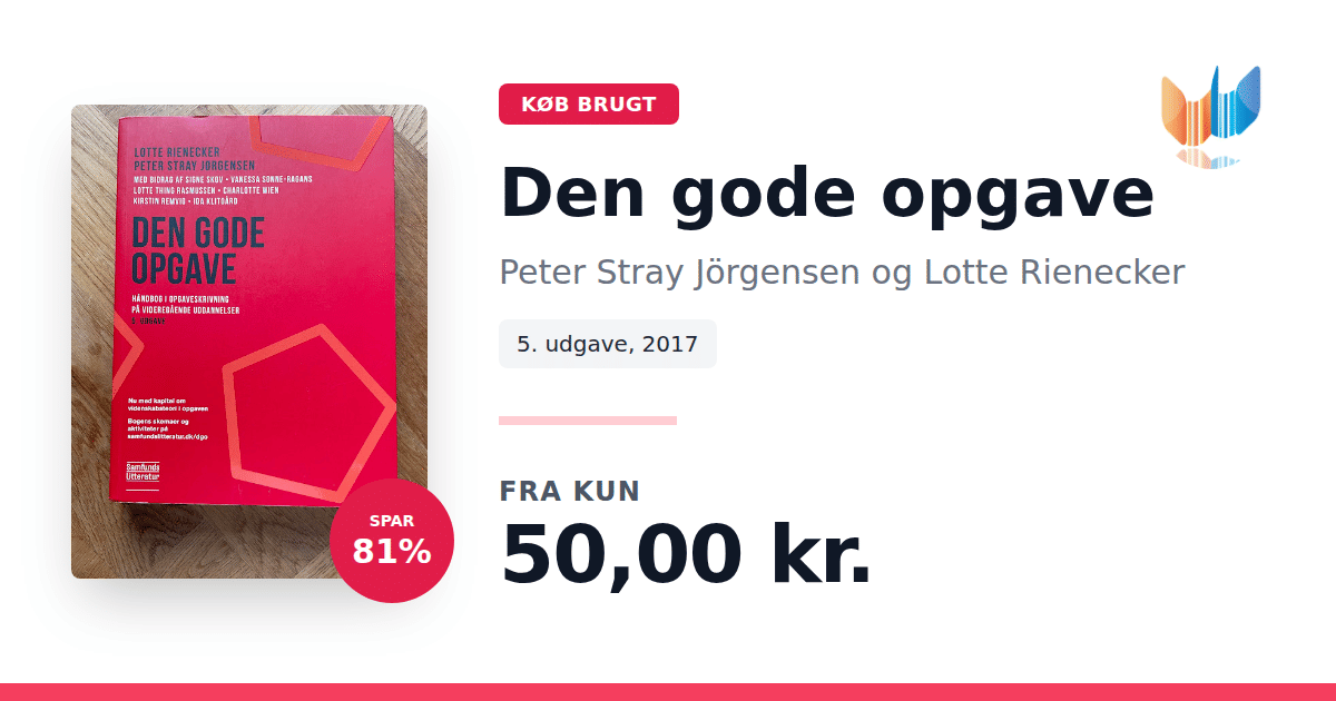 "Den gode opgave" udkommer nu i 5. udgave og er den ubestridte guide for alle studerende, der skal skrive selvstændige og videnskabelige opgaver. I denne udgave har Peter Stray Jörgensen og Lotte Rienecker fået selskab af fem nye medforfattere, som bidrager med deres unikke ekspertise. 5. udgave byder på to nye kapitler – et om videnskabsteori, der belyser, hvordan man omsætter teoretiske overvejelser til praksis, samt et kapitel om litteratur- og informationssøgning, som introducerer de studerende til processen bag en systematisk research. Bogen er fortsat fyldt med konkrete eksempler og aktiviteter, der hjælper den studerende godt på vej i opgaveskrivningen, og har i over 20 år dannet grundlaget for succesfuld akademisk skrivning.