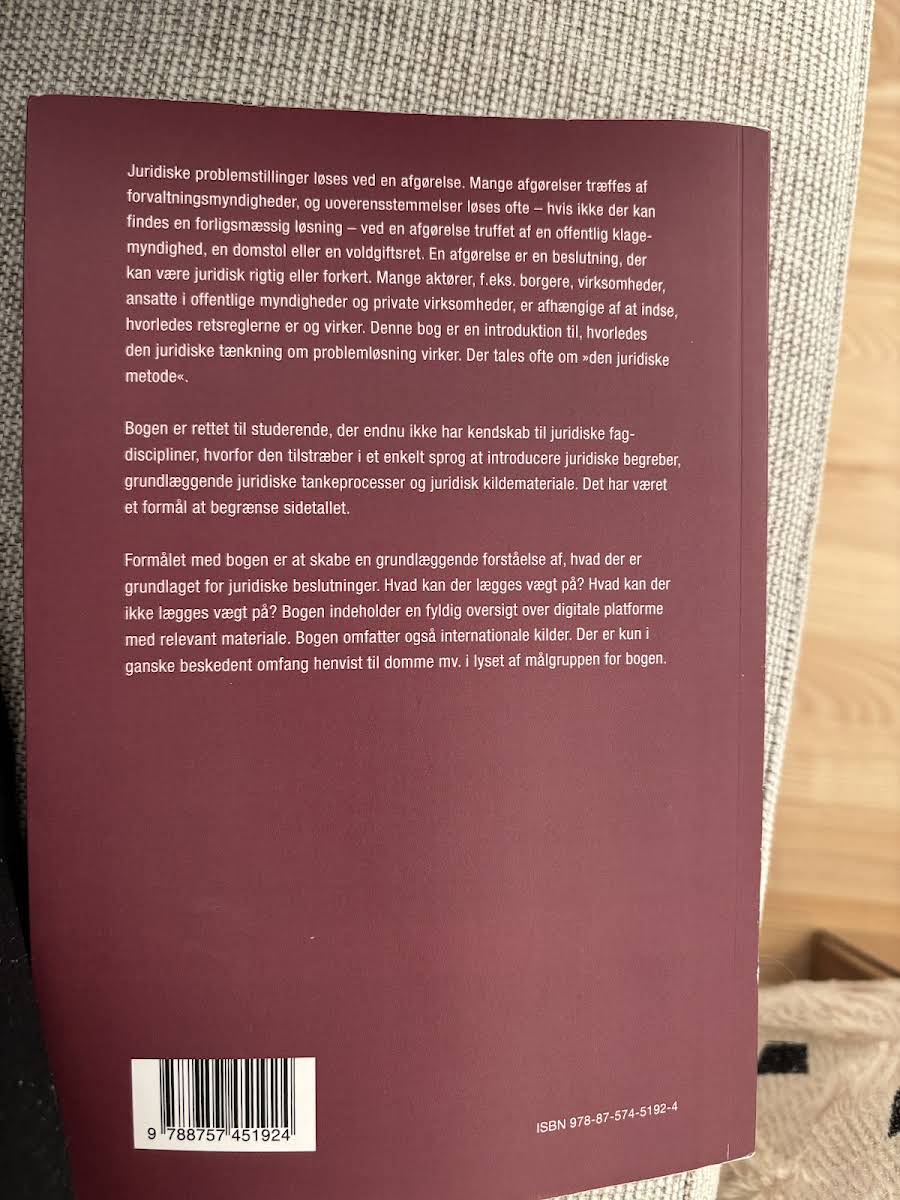 I anden udgave af Den juridiske løsning - Introduktion til den juridiske metode giver Carsten Munk-Hansen en klar og enkel indføring i, hvordan juridiske problemstillinger løses ved afgørelser. Afgørelser træffes af forvaltningsmyndigheder, klagemyndigheder, domstole eller voldgiftsretter, og de kan være juridisk korrekte eller forkerte. Bogen forklarer, hvordan borgere, virksomheder og myndighedsansatte kan tilegne sig indsigt i retsreglernes virkemåde. Gennem eksempler illustreres »den juridiske metode« og de tankeprocesser, der fører frem til en afgørelse. Målgruppen er studerende uden forudgående kendskab til jura, og sproget er bevidst holdt enkelt. Bogen introducerer centrale juridiske begreber, grundlæggende analyseværktøjer og kildemateriale. Formålet er at give et solidt fundament for at forstå, hvad der kan vægtes i en juridisk beslutning - og hvad der ikke kan. Derudover indeholder bogen en oversigt over relevante digitale platforme og inddrager internationale kilder, mens henvisninger til domme er begrænsede i forhold til målgruppens niveau.