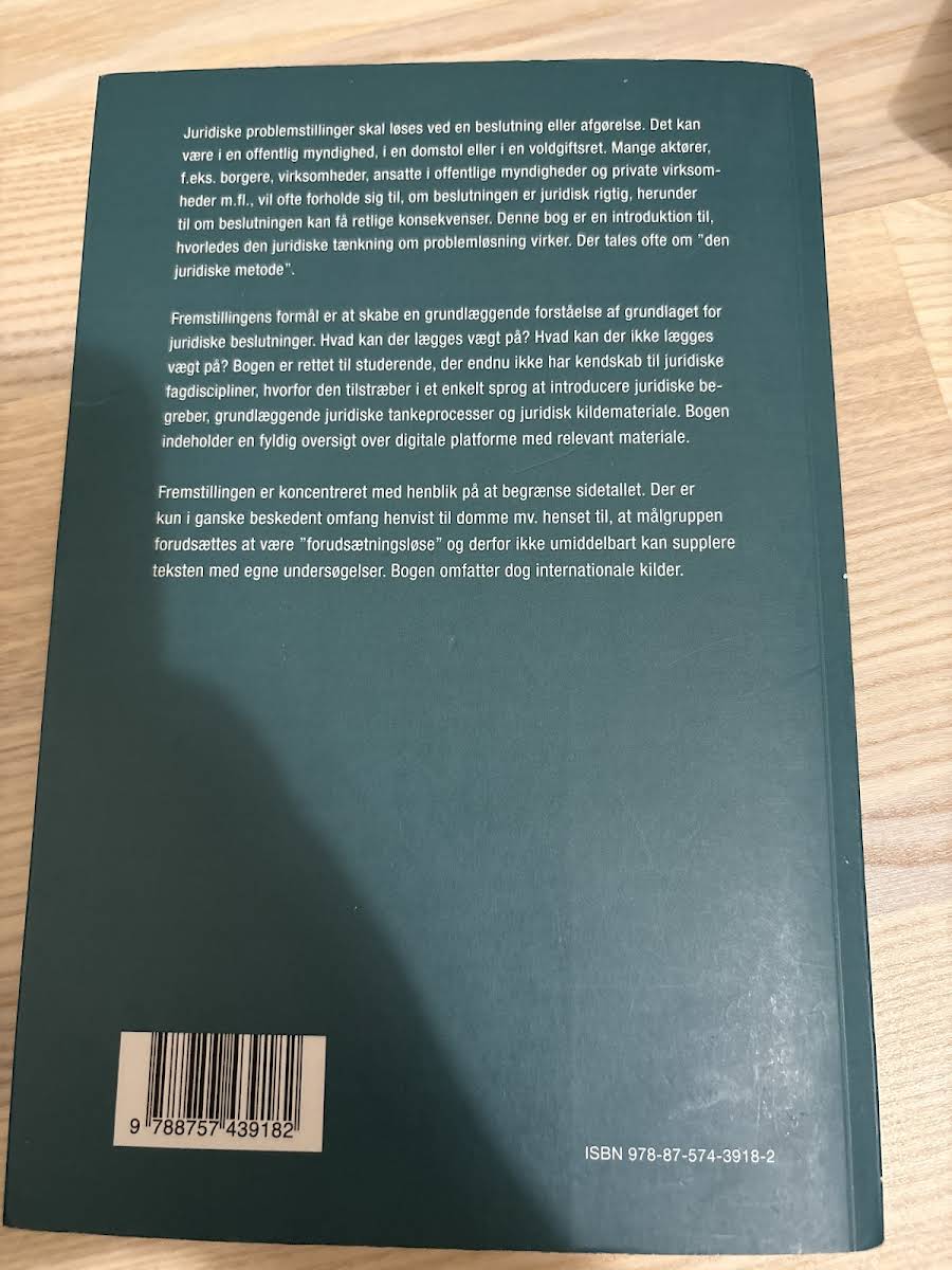 "Den juridiske løsning" er en grundlæggende introduktion til, hvordan juridiske problemstillinger analyseres og håndteres gennem beslutninger og afgørelser. Bogen redegør for den juridiske metode og giver læseren en systematisk indføring i de principper, der ligger til grund for retlige overvejelser og afgørelser. I første udgave udgivet i 2017 præsenteres emner som ret, regler og metode, loven, EU- og international ret samt lovfortolkning og retspraksis. Gennem et enkelt og tilgængeligt sprog får studerende og begyndere et solidt fundament i juridisk tænkning og kendskab til vigtige kilder og materiale, der understøtter den juridiske proces. Bogen kombinerer en kompakt fremstilling med en overskuelig struktur, der gør den velegnet til dem, der ønsker at opnå en overordnet forståelse for, hvordan juridiske beslutninger træffes – fra de formelle retskilder til de praktiske aspekter af juridisk anvendelse.
