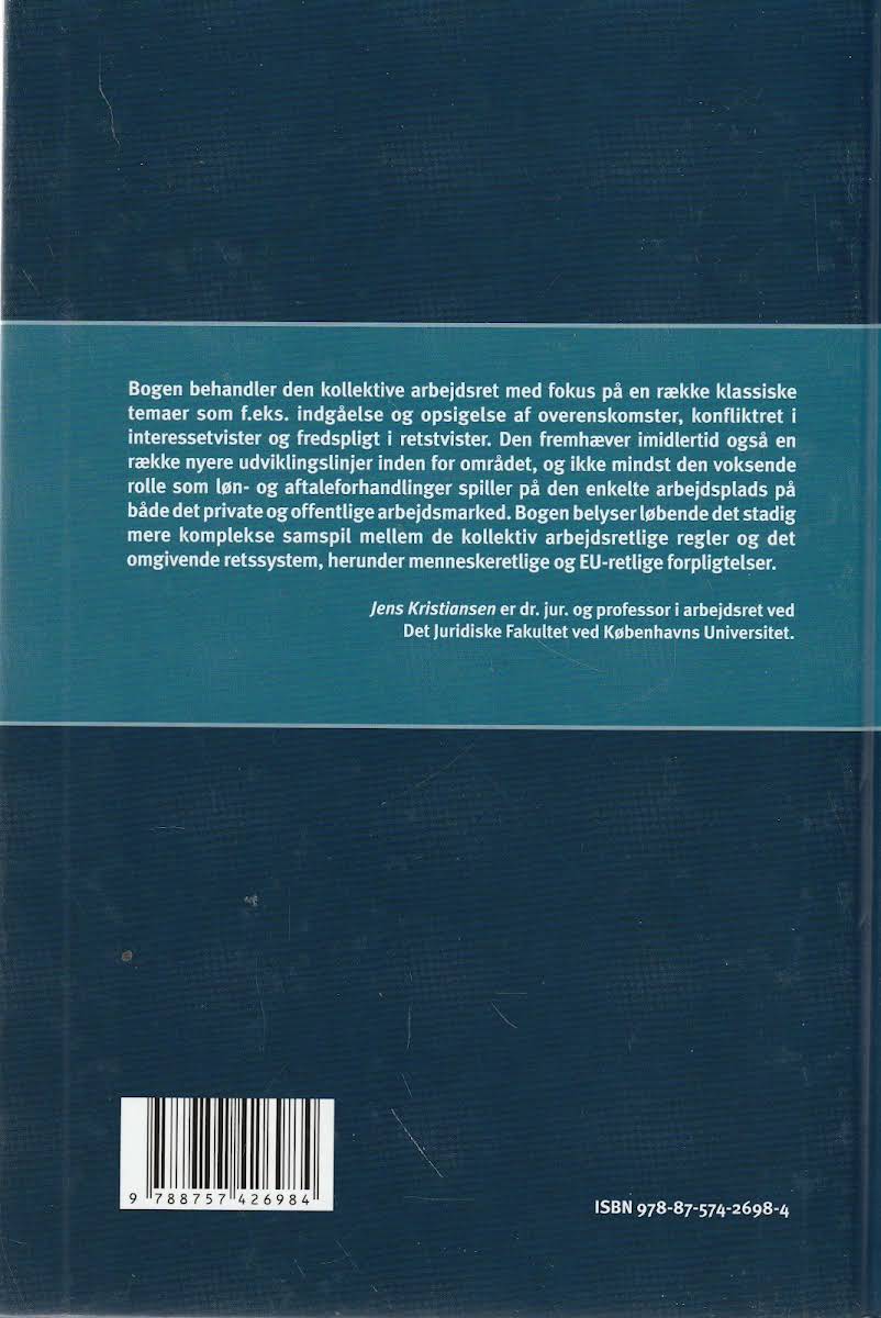"Den kollektive arbejdsret" af Jens Kristiansen giver en grundig gennemgang af de centrale elementer inden for den kollektive arbejdsret med et solidt teoretisk fundament og praktiske eksempler. Bogen dykker ned i de klassiske temaer såsom indgåelse og opsigelse af overenskomster, konfliktret ved interessetvister samt fredspligt i retstvister, og den belyser samtidig, hvordan løn- og aftaleforhandlinger i stigende grad præger både det private og offentlige arbejdsmarked. Med en opdateret fremstilling, der inddrager ny retspraksis og aktuelle udviklingslinjer, giver bogen en alsidig indsigt i det komplekse samspil mellem de kollektive arbejdsretslige principper og det omkringliggende retssystem. Den rummer desuden en dybdegående analyse af de lokale aftalerelationer og de rettigheder og forpligtelser, der følger heraf, hvilket gør den til et uundværligt redskab for alle, der arbejder med eller interesserer sig for arbejdsretslige forhold.