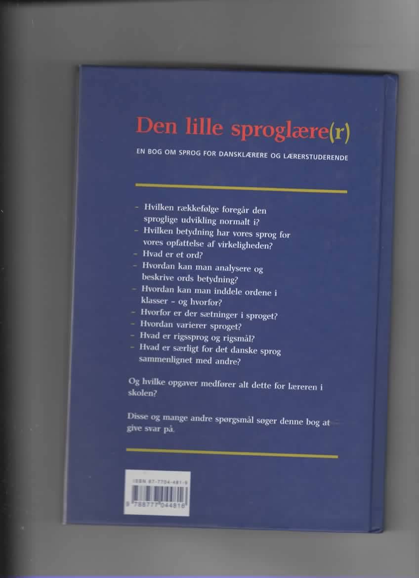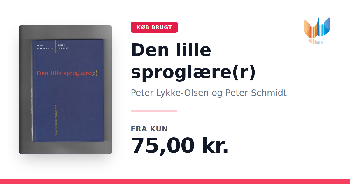 Lige nu kan du købe "Den lille sproglære(r) " af Peter Lykke-Olsen og Peter Schmidt til kun 75,00 kr. Bogen du ser her er brugt, og i perfekt stand. Vi har i øjeblikket kun et enkelt eksemplar til salg af "Den lille sproglære(r) ", så slå til mens du kan!