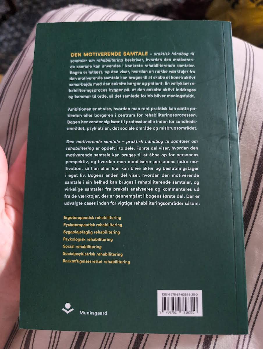 "Den motiverende samtale – praktisk håndbog til samtaler om rehabilitering" præsenterer en håndgribelig tilgang til anvendelsen af den motiverende samtale i rehabiliteringsprocesser. Med en enkel og letforståelig stil introducerer Gregers Rosdahl en række praktiske værktøjer, der hjælper fagfolk med at sætte borgeren eller patienten i centrum. Bogen understreger vigtigheden af at inddrage den enkelte aktivt, så vedkommende kan blive en medskaber i forandringsprocessen og opnå større selvbestemmelse. Bogen er struktureret i to koordinerede dele. Den første del fokuserer på, hvordan man gennem den motiverende samtale kan åbne op for individets perspektiv og indre motivation, mens den anden del illustrerer, hvordan disse metoder konkret omsættes i rehabiliterende samtaler med udgangspunkt i virkelige cases. Denne metode gør bogen til et essentielt redskab for professionelle inden for sundhed, socialområdet, psykiatrien samt misbrugsbehandling, der ønsker at skabe et meningsfuldt og aktivt samarbejde med den enkelte.