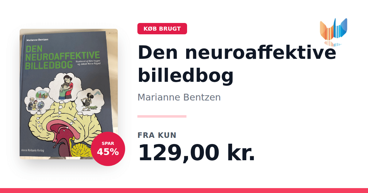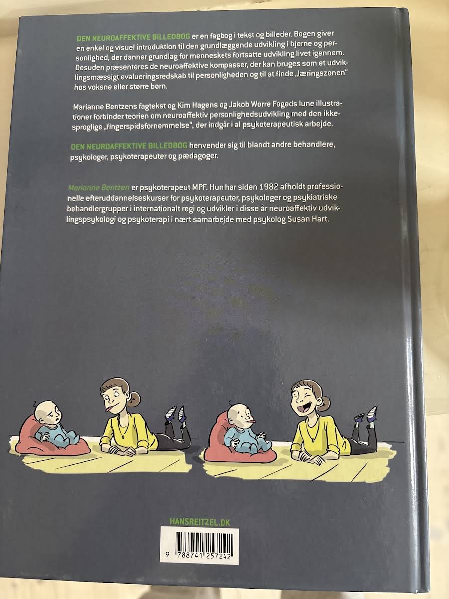 Den neuroaffektive billedbog er en fagbog i tekst og billeder af Marianne Bentzen. På 64 sider i hardcover præsenterer den en tilgængelig og visuel gennemgang af hjernens og personlighedens grundlæggende udvikling gennem hele livet. Bogen introducerer de neuroaffektive kompasser som brugbare evalueringsredskaber til at kortlægge personlighedens udviklingsniveau og til at finde den optimale læringszone hos voksne og større børn. Med Kim Hagens og Jakob Worre Fogeds enkle, varme illustrationer bliver teorien om neuroaffektiv personlighedsudvikling sat i en billedmæssig ramme, der understøtter den nonverbale forståelse, som er central i psykoterapeutisk arbejde.
