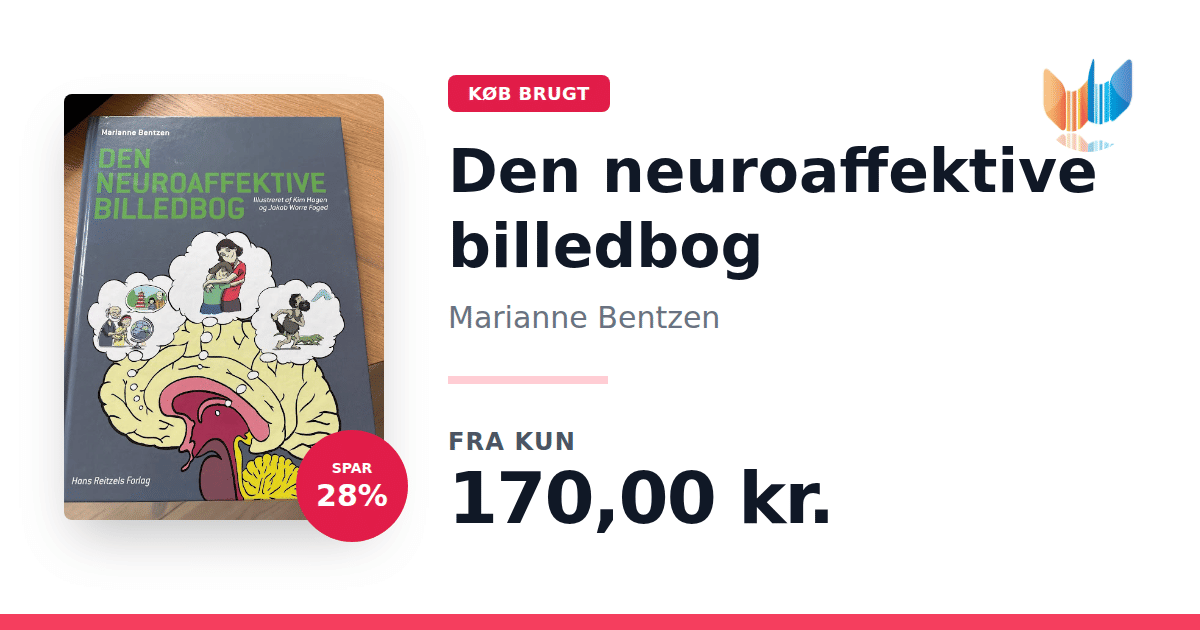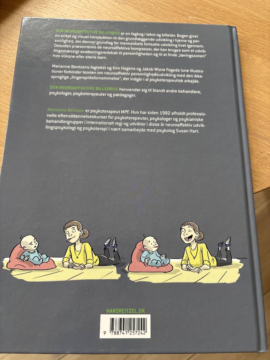 Den neuroaffektive billedbog er en fagbog i tekst og billeder af Marianne Bentzen. På 64 sider i hardcover præsenterer den en tilgængelig og visuel gennemgang af hjernens og personlighedens grundlæggende udvikling gennem hele livet. Bogen introducerer de neuroaffektive kompasser som brugbare evalueringsredskaber til at kortlægge personlighedens udviklingsniveau og til at finde den optimale læringszone hos voksne og større børn. Med Kim Hagens og Jakob Worre Fogeds enkle, varme illustrationer bliver teorien om neuroaffektiv personlighedsudvikling sat i en billedmæssig ramme, der understøtter den nonverbale forståelse, som er central i psykoterapeutisk arbejde.