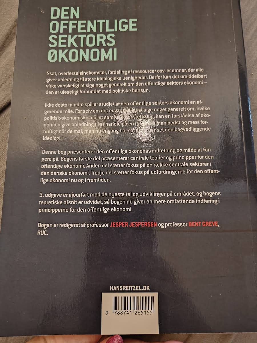 "Den offentlige sektors økonomi" giver en grundig introduktion til det komplekse samspil mellem skat, overførselsindkomster og ressourcefordeling. Bogen tager udgangspunkt i, at den offentlige økonomi er dybt forankret i politiske beslutninger, men understreger samtidig vigtigheden af en solid økonomisk forståelse for at nå samfundsmæssige mål. I første del præsenteres centrale teorier og principper, der danner rammen om, hvordan den offentlige sektor fungerer. Derefter sættes fokus på udvalgte nøglesektorer i den danske økonomi, hvor bogens analyse giver et indblik i, hvordan offentlige prioriteringer påvirker den samlede økonomi. I den afsluttende del diskuteres de aktuelle og fremtidige udfordringer, der stiller nye krav til den offentlige økonomi. I denne 3. udgave er indholdet opdateret med de nyeste tal og udviklinger, og de teoretiske afsnit er udvidet for at give en mere omfattende indføring i emnet. Bogen, udgivet af Gyldendal i 2016, er et essentielt redskab for alle, der ønsker at opnå en dybere forståelse af den offentlige sektors økonomiske fundament.