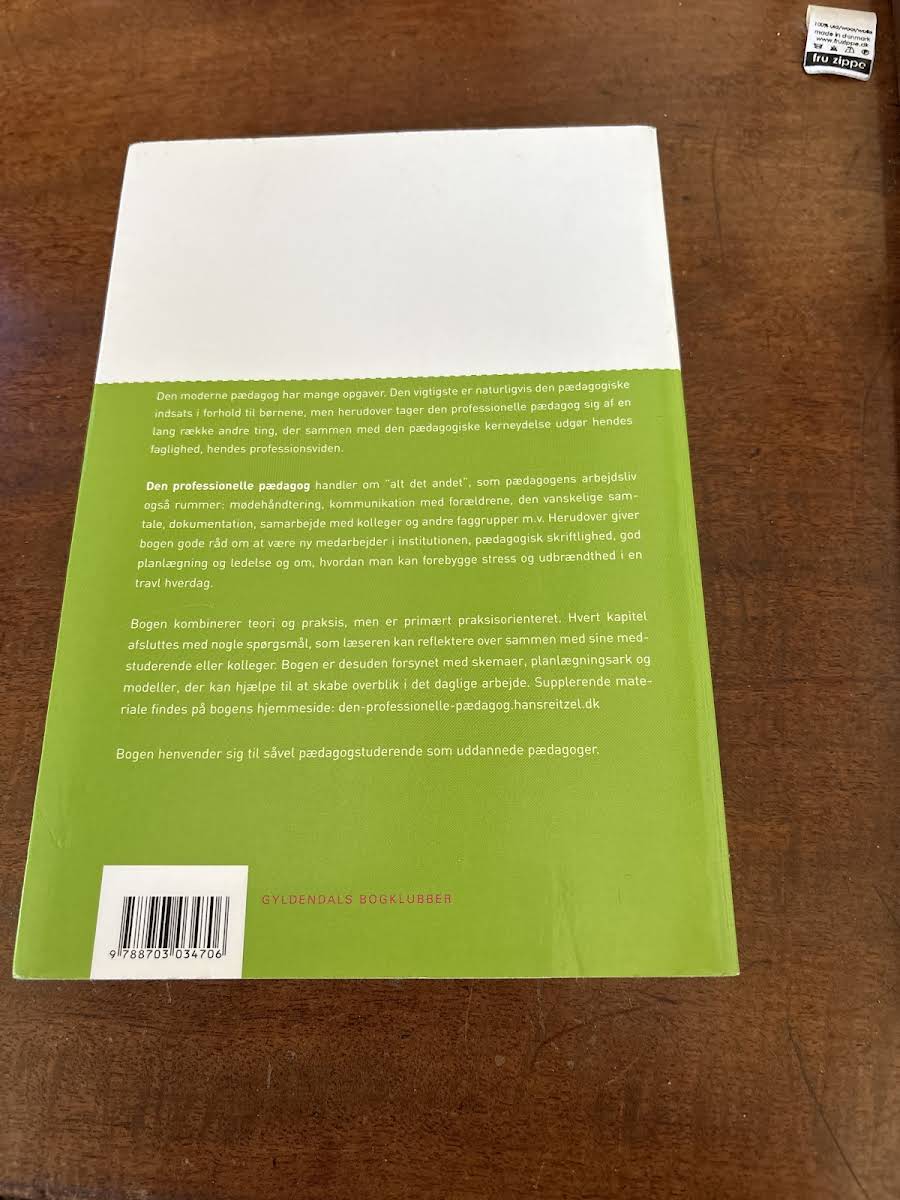 Den professionelle pædagog. En grundbog på pædagoguddannelsen med fokus på faglighed, etik og praksis i arbejdet med mennesker. God stand og velegnet til studerende.