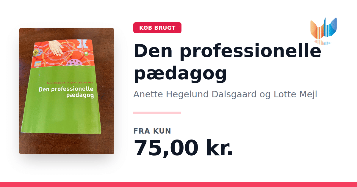 Lige nu kan du købe "Den professionelle pædagog" af Anette Hegelund Dalsgaard og Lotte Mejl til kun 75,00 kr. Bogen du ser her er brugt, og i perfekt stand. Vi har i øjeblikket kun et enkelt eksemplar til salg af "Den professionelle pædagog", så slå til mens du kan!