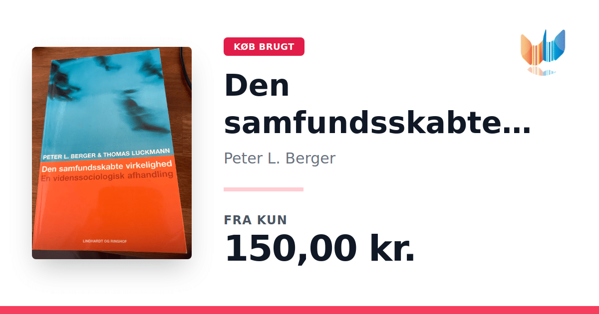 Lige nu kan du købe "Den samfundsskabte virkelighed" af Peter L. Berger til kun 150,00 kr. Bogen du ser her er brugt, og i perfekt stand. Vi har i øjeblikket 2 eksemplarer til salg af "Den samfundsskabte virkelighed", så husk at se de forskellige udgaver.