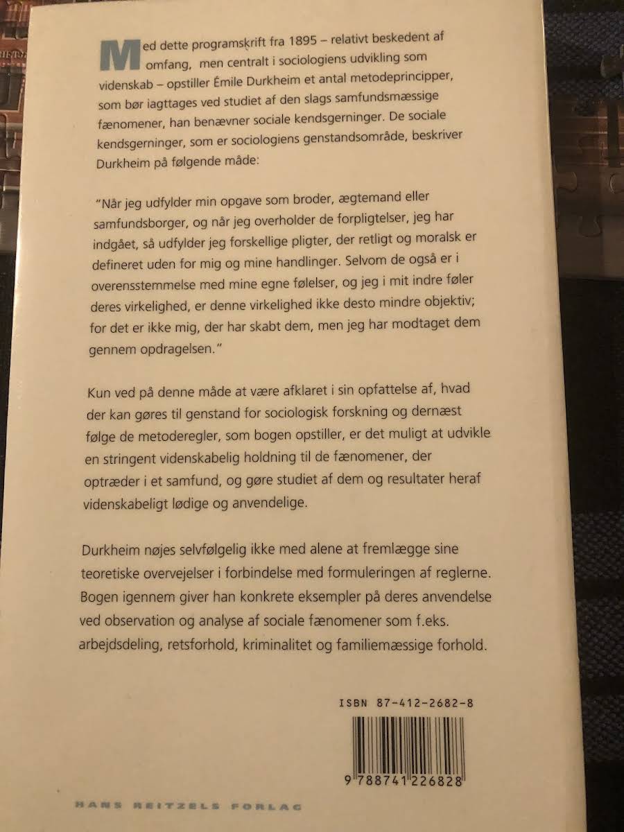 Émile Durkheims "Den sociologiske metodes regler" udgør et centralt bidrag til samfundsvidenskaben, hvor forfatteren tydeliggør, hvordan man systematisk kan studere de overordnede sociale love og sammenhænge, der definerer et samfund. I værket præsenterer Durkheim en række metodeprincipper, som skal danne grundlag for analysen af de såkaldte ’sociale kendsgerninger’ – de fænomener, der går ud over de enkelte individer og binder samfundet sammen. Gennem konkrete eksempler illustrerer han, hvordan disse principper kan anvendes i studiet af centrale samfundsmæssige kategorier såsom arbejdsdeling, retssystemer, kriminalitet og familieforhold. Ved at gøre dette lægger han fundamentet for en dybere forståelse af, hvordan sociale strukturer og mekanismer fungerer. I den 2005 udgave, udgivet af Hans Reitzels Forlag, forstærkes værkets relevans med en introduktion af lektor Gorm Harste fra Institut for Statskundskab ved Århus Universitet. Oversat fra fransk af Esbern Krause-Jensen, forbliver "Den sociologiske metodes regler" en uundværlig klassiker for alle, der ønsker at dykke ned i sociologiens grundlæggende principper og metoder.